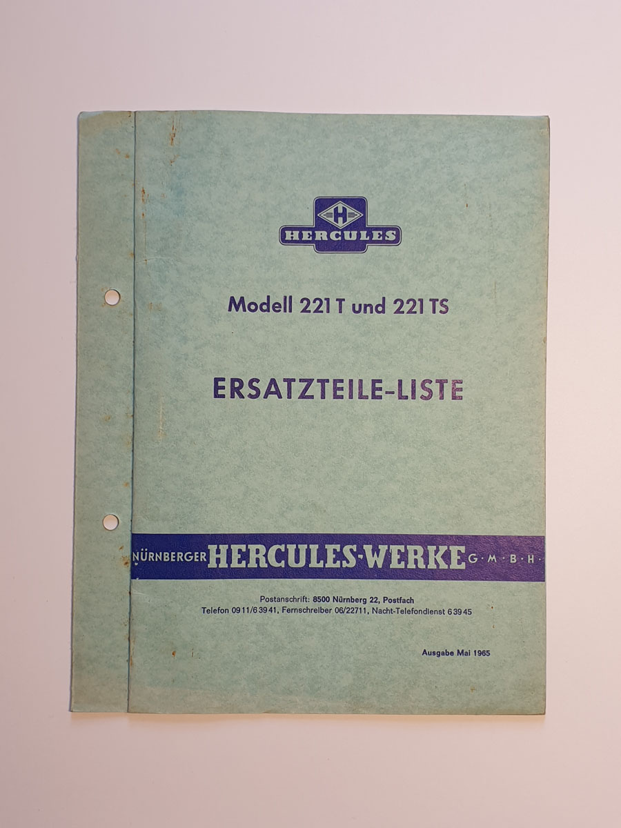 Ersatzteilliste, gebraucht, Hercules Modell 221 T und 221 TS