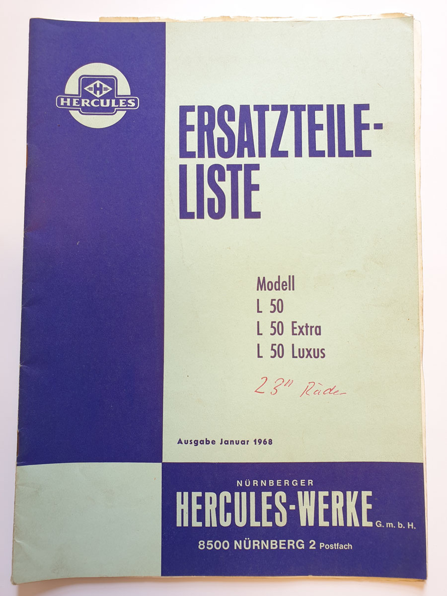 Ersatzteilliste, gebraucht, Hercules Modell L 50, L 50 Extra, L 50 Luxus
