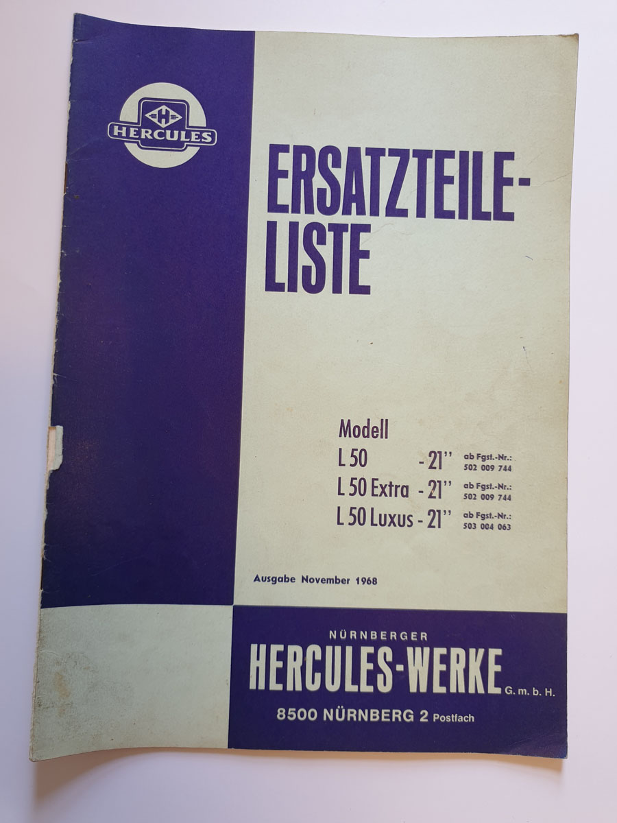 Ersatzteilliste, gebraucht, Hercules Modell L50-21, L50 Extra-21, L50 Luxus-21