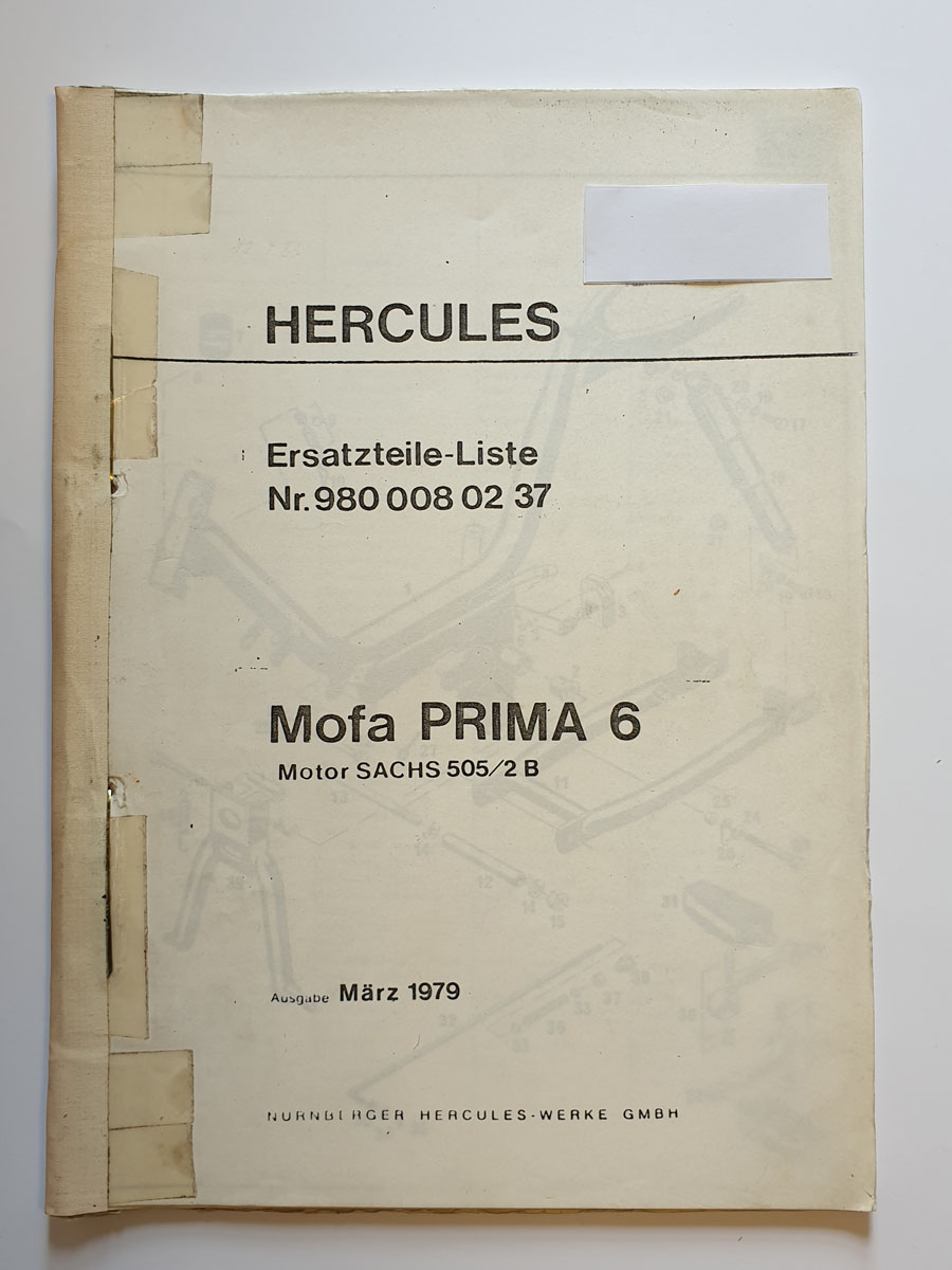 Ersatzteilliste, gebraucht, Hercules Mofa PRIMA 6
