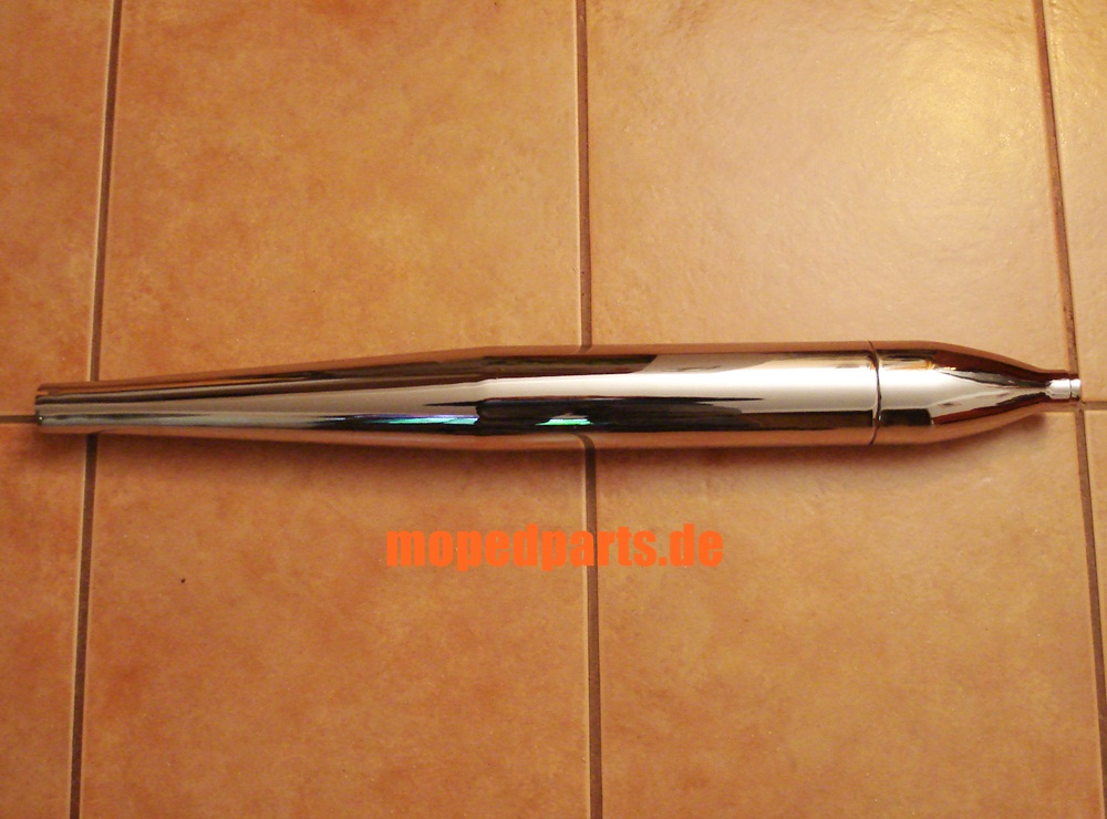 Mokickauspuff "Zigarre" chrom mit folgenden Daten: