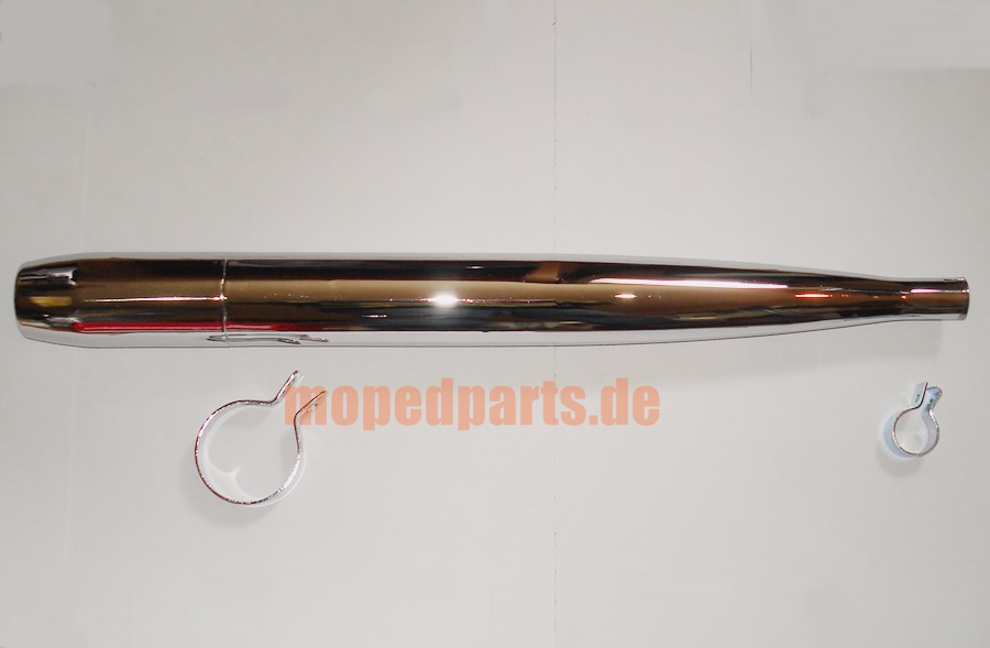 Mofa - und Mopedauspuff chrom mit Halteschelle und Klemmschelle