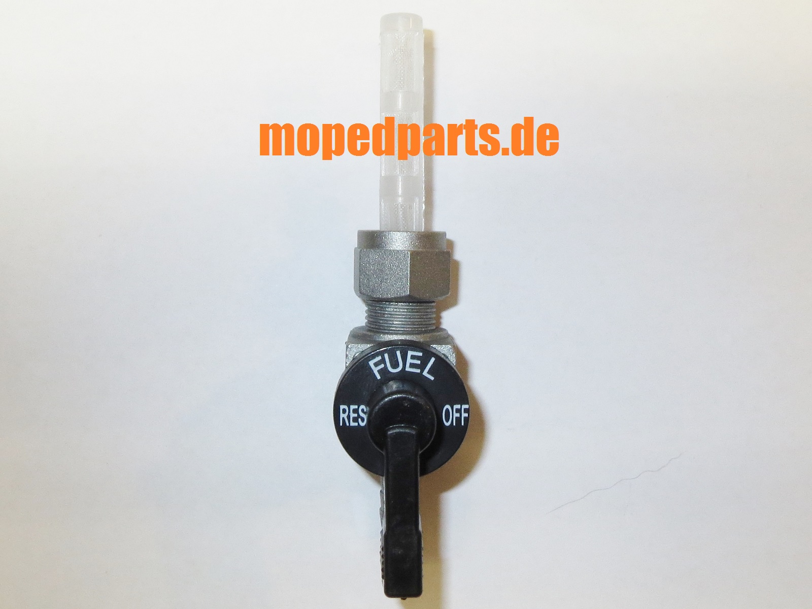 Benzinhahn M12, Metall mit Kunststoffhebel, Abgang unten, für diverse Mofas, Mokicks, Klein - und Leichtkrafträder.