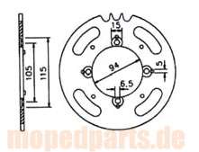 Innekreis 94mm, Lochkreis 105 mm und 115 mm, 1/2x3/16 x 7,75mm.