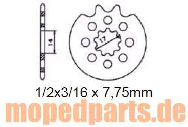 Innenverzahnung 17 mm, 1/2x3/16 x 7,75mm